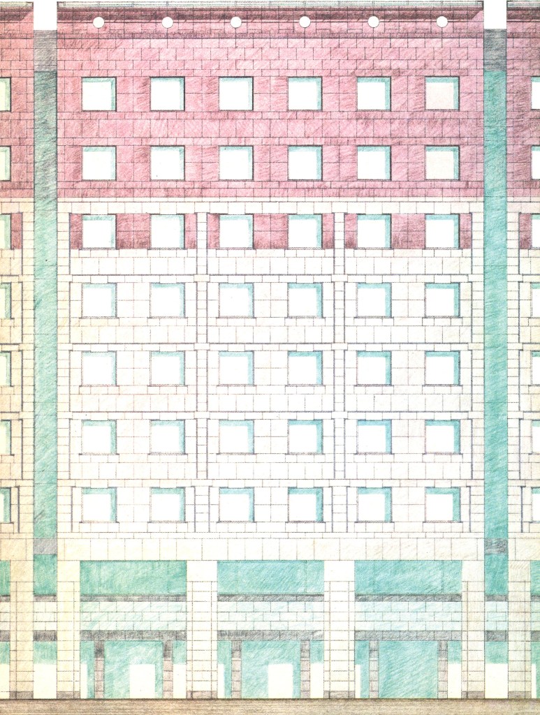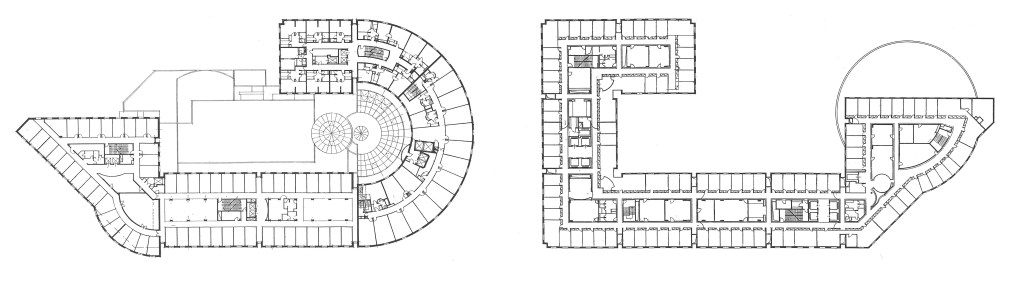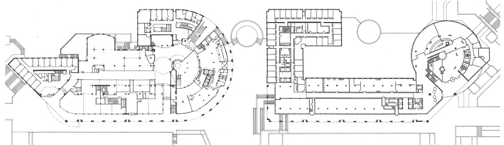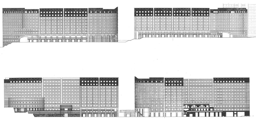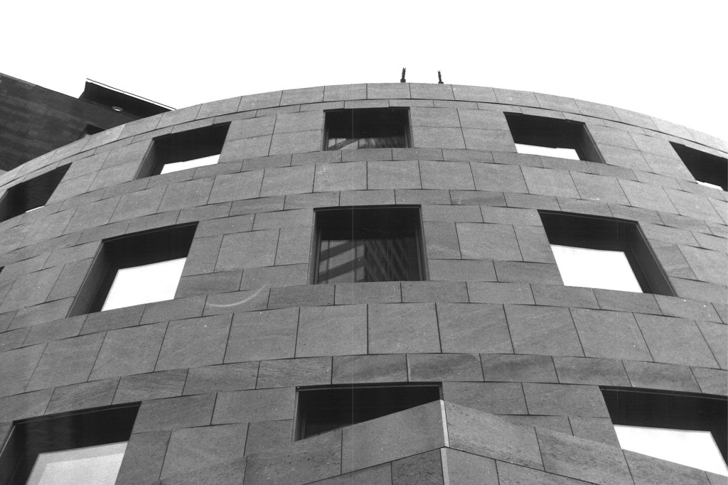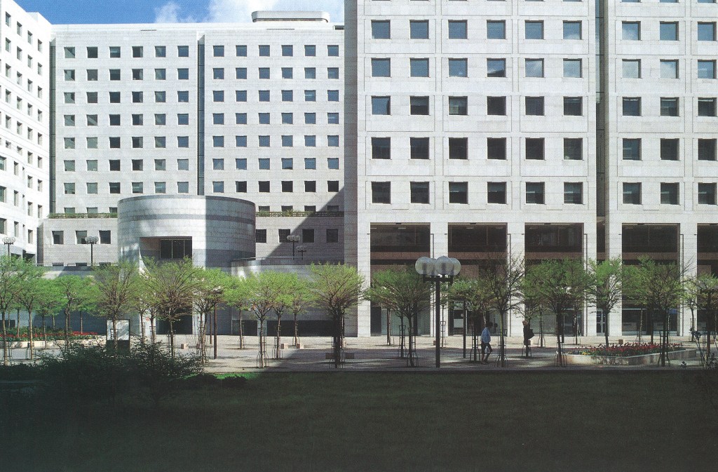 Il complesso di uffici è situato nella parte bassa dell’Esplanade che forma l’asse centrale de La Défense. Scendendo l’Esplanade in direzione Parigi, si scopre da lontano la testata dell’IBM piegata a 45 gradi con la grande apertura dei due archi incrociati. Il complesso delimita il fronte sud di un corso alberato che costituisce l’unico vero “spazio urbano” del quartiere. Già da lontano si percepisce la suddivisione del complesso in più “case” il cui ritmo evoca quello di un “boulevard” parigino, mentre la massa muraria viene caratterizzata dai due colori della pietra, con il coronamento in porfido levigato che rispecchia il cielo. Le grandi aperture ad arco nella testata dell’IBM e nella testata opposta verso parigi segnano chiaramente gli ingressi principali. Entrati nella hall si scopre un ampio spazio organizzato su tre livelli connessi visivamente.