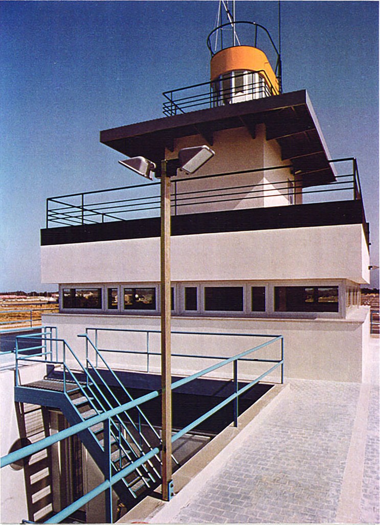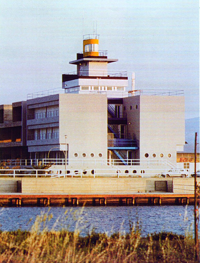 Il progetto riguarda la parte centrale di un piano generale di sistemazione turistica (superficie 160 ha di cui 42,5 d’acqua) per la realizzazione di un Centro Nautico in Calabria. L’edificio, situato su un terreno circondato d’acqua su tre lati, è composto di 9 unità, di cui la prima, affacciata sull’accesso al porto, è destinata all’insieme di servizi di direzione e ricezione, le altre a uso polivalente (commercio, uffici, residenza). Tenuto conto della sua collocazione nella laguna si è voluto figurativamente fare riferimento a immagini di architettura navale.