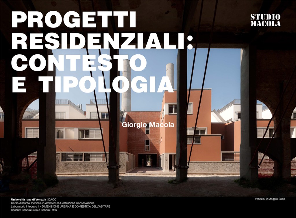 Giorgio Macola terrà la lezione dal titolo “Progetti residenziali: contesto e tipologia” presso Uvinersità Iuav di Venezia, all’interno del Laboratorio Integrato II – Dimensione Urbana e domestica dell’abitare, proff. S. Pittini, S. Bullo.
